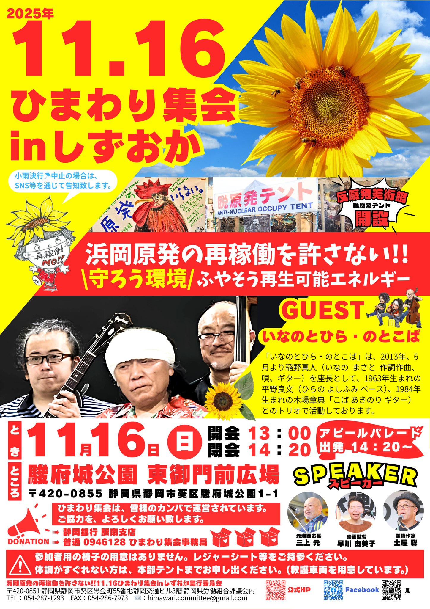 2025年11月16日(日)、「浜岡原発の再稼働を許さない!! 11.16ひまわり集会inしずおか」にて、経産省前テントひろば・反原発美術館(テント実物)が再建展示されます!
