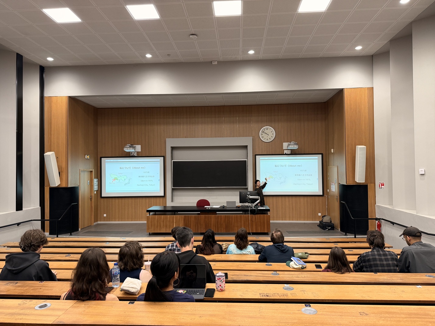 ところで、上映の前には、ボルドー・モンテーニュ大学で講演も行いました。大学院生を対象に、「ドキュメンタリー制作を通じて視る日本社会」という講演タイトルで、写真や動画を交えながら70分ほどお話ししました。講演も質疑応答もすべて日本語でした。